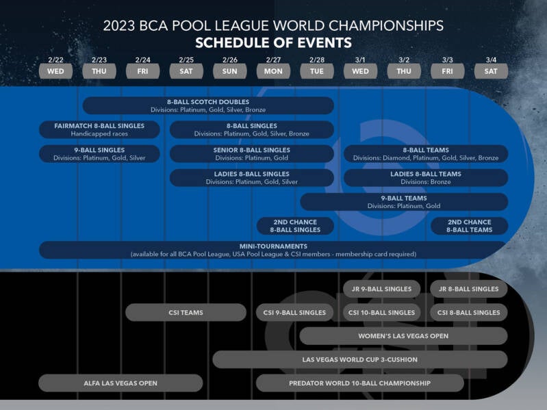 Players must have been 2023 members of a BCA Pool League or USA Pool League and played at least four (4) weeks in a sanctioned division during the 2023 calendar year.